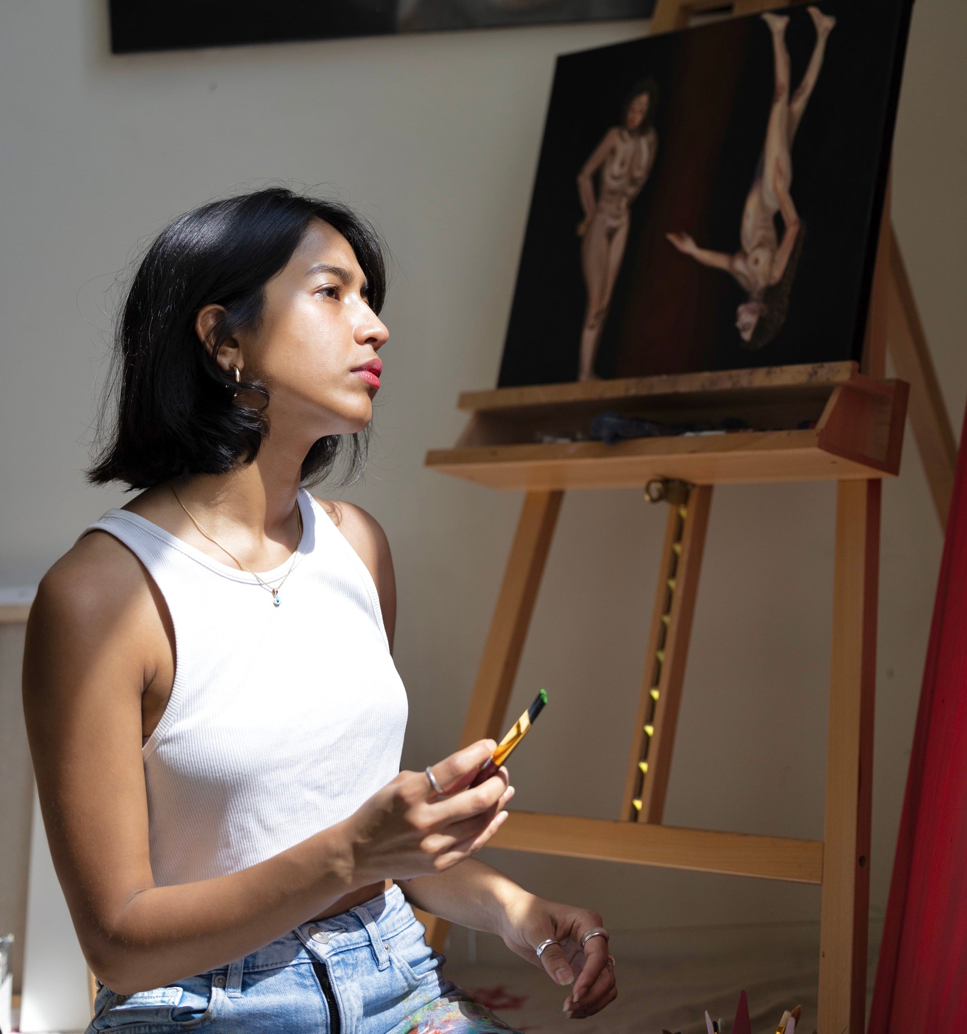 As an expressionist mixed media artist hailing from India but now rooted in the vibrant energy of Los Angeles, I navigate the complex intersections of identity, belonging, and the quest for authenticity. My artistic journey explores the contrasting worlds that have shaped me – a childhood away from home and the ongoing search for a profound sense of self. My work delves into the intricacies of what constitutes a “Home”. Does it originate from blood ties, or can it be cultivated within the depths of one’s being? The idea of authenticity perplexes me, as we are inevitably shaped by the people we encounter and our environments. Can one indeed be authentic without acknowledging these influences? Through my art, I confront these questions head-on, unravelling the layers that define the essence of individuality. Through my mixed media creations, I deeply introspect, questioning the boundaries between self and surroundings, past and present. My art serves as a mirror for the ever-evolving individual, a testament to the malleable nature of identity and the potential to construct a sense of home from within. As I reconcile the diverse influences that have shaped me, I aim to inspire a dialogue that transcends cultural, geographical, and temporal boundaries, inviting all to contemplate the intricacies of their existence.