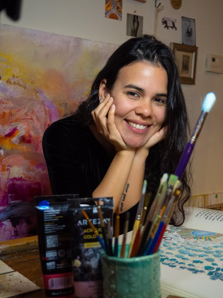 My influences are creators whose work reflect their path of metamorphosis and help me see the myths I live by— CG Jung, Hilma af Klint, Rosalía and Rumi to name a few. I come to the canvas to depict my visions and peer more clearly into my subconscious. The intention of my work is to inspire others discover something true to them.