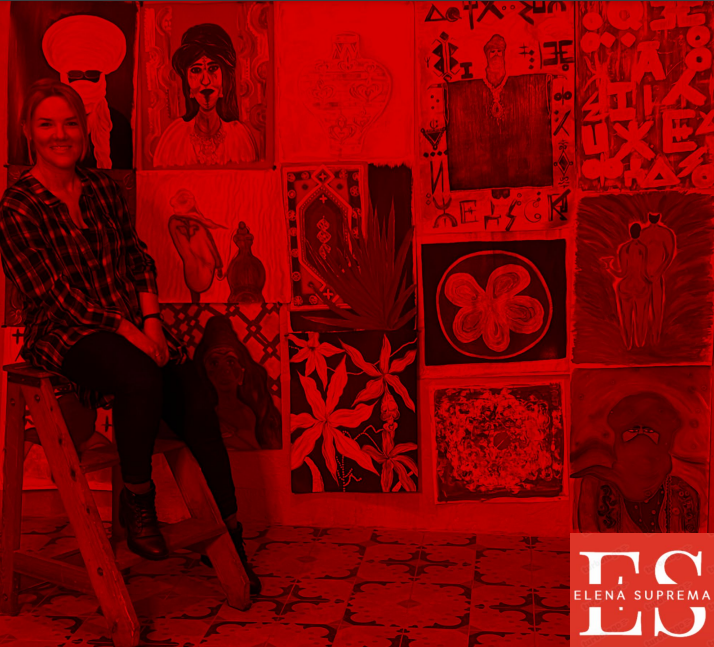 Elena Suprema is a contemporary multimedia artist, born and raised in St. Petersburg. In 2012, Elena left Russia and embarked on an extensive journey to various parts of the world. Over the past 10 years, she has visited more than 45 countries. During her travels, she immersed herself in the nuances of local painting, studying under art masters in India, Cambodia, Spain, and Italy. She pursued education at the Stieglitz State Academy of Art and Design and the Académie de la Grande Chaumiere in Paris. Additionally, she honed her skills with calligraphy masters in Asilah, Morocco, and at an art studio in Bali, Indonesia.