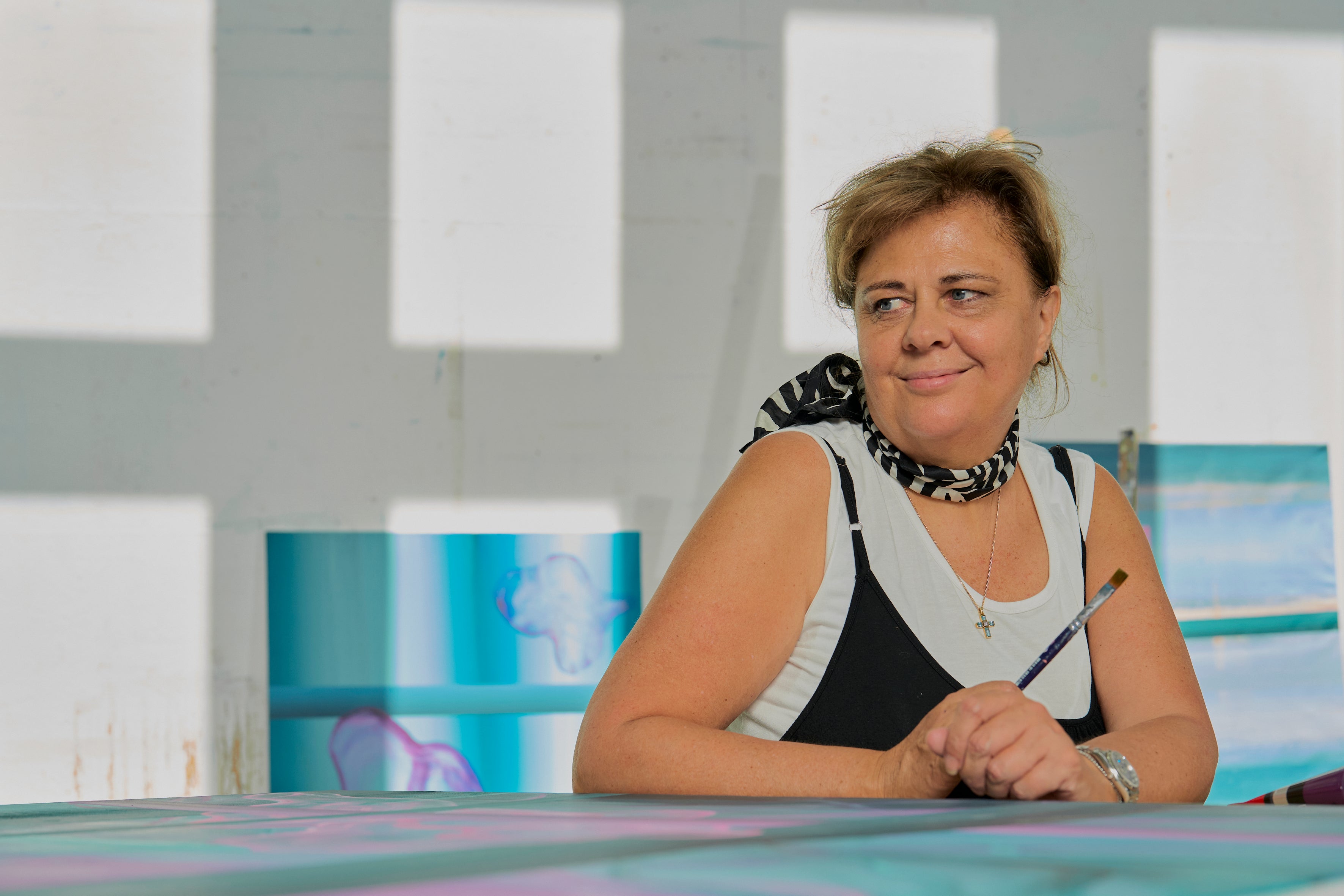 Artist Statement: "In my art I strive to fuse the versatility of abstract art, wall art, geometry and color harmonies into a fascinating unity, particularly focusing on my 'Infinity' series, in which I work with colorful tiles that expand into infinite variations and constant transformation in a sustainable manner.”