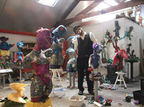 Created from the carcasses of dolls, wax, glitter paint and found objects....